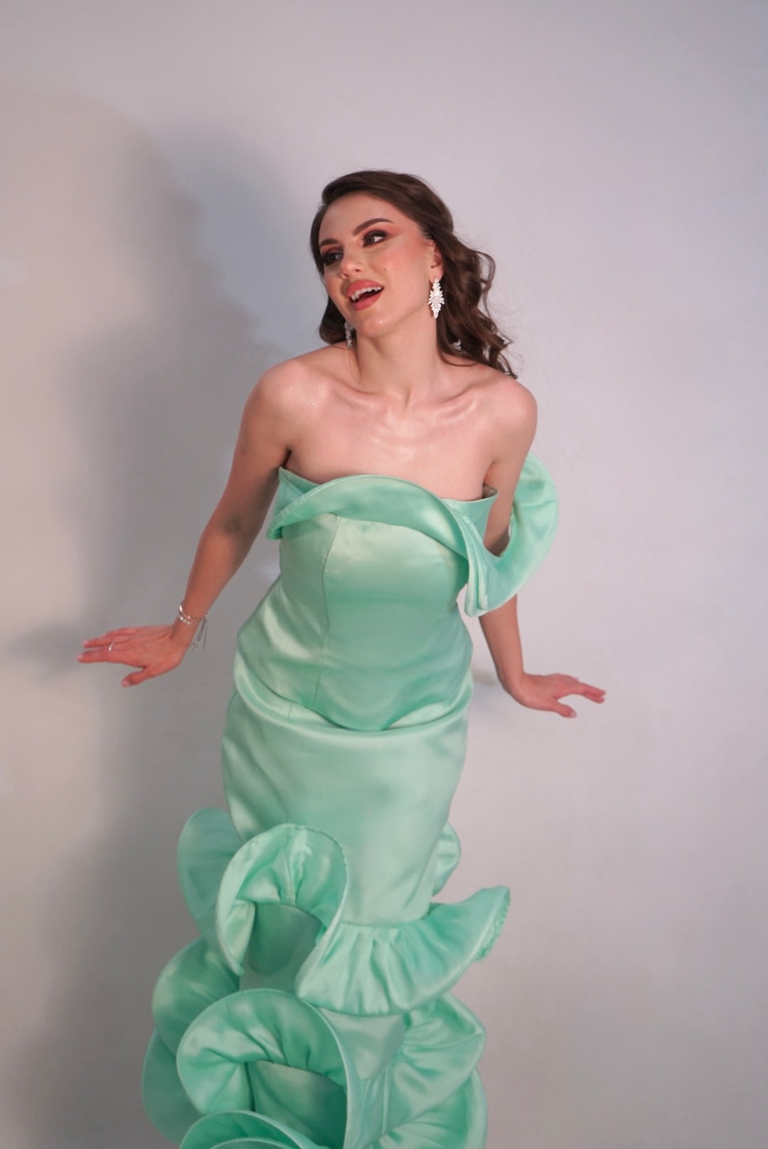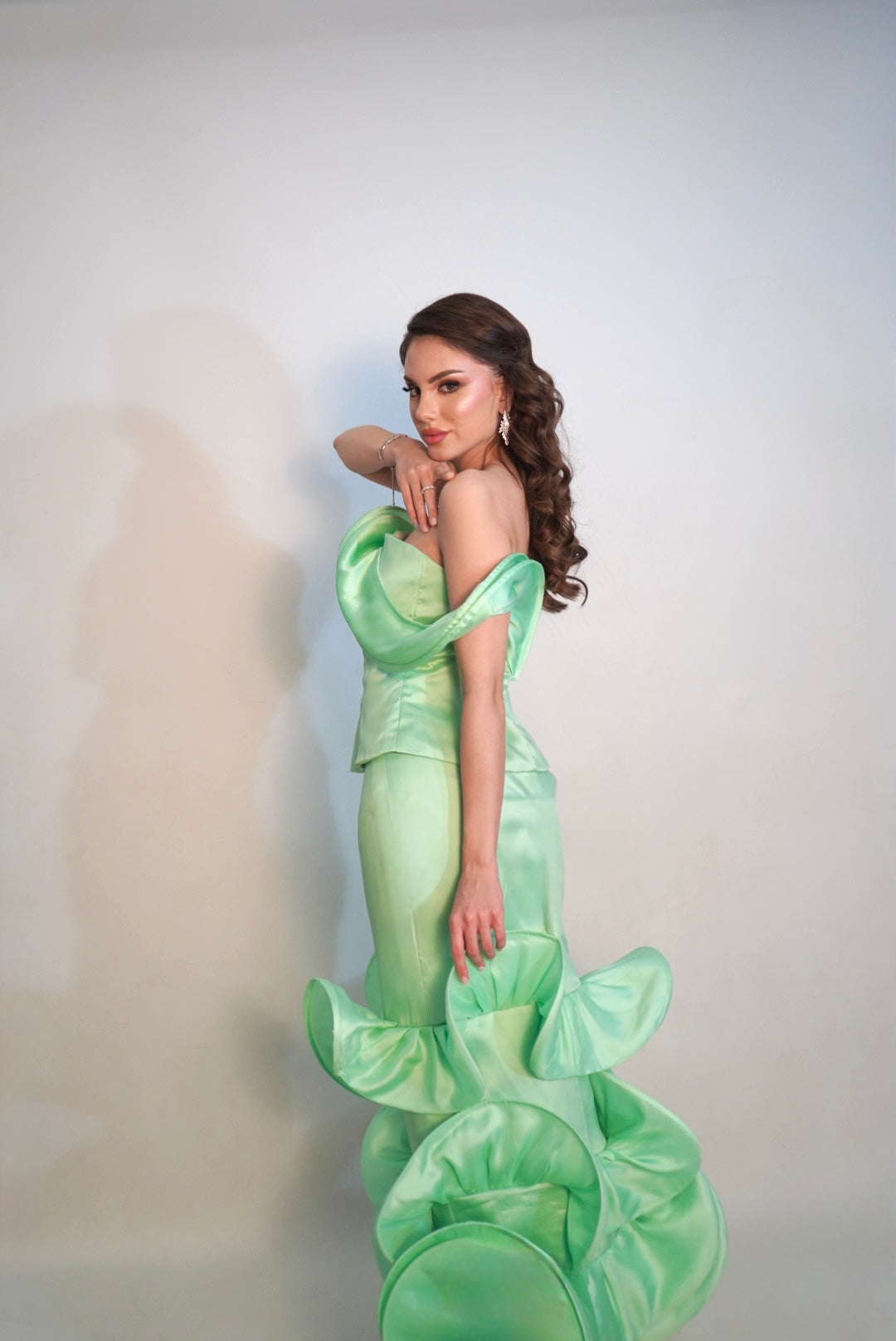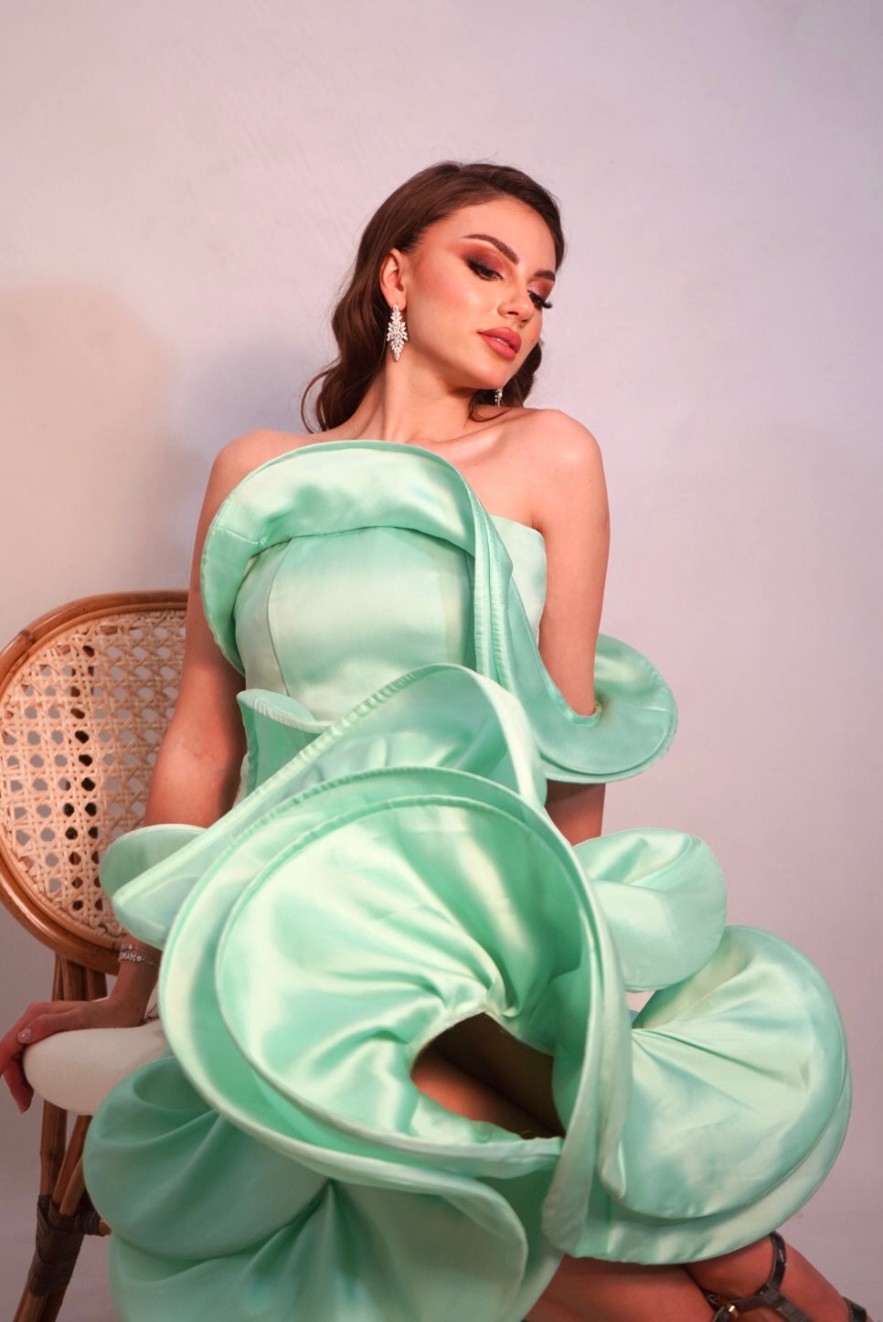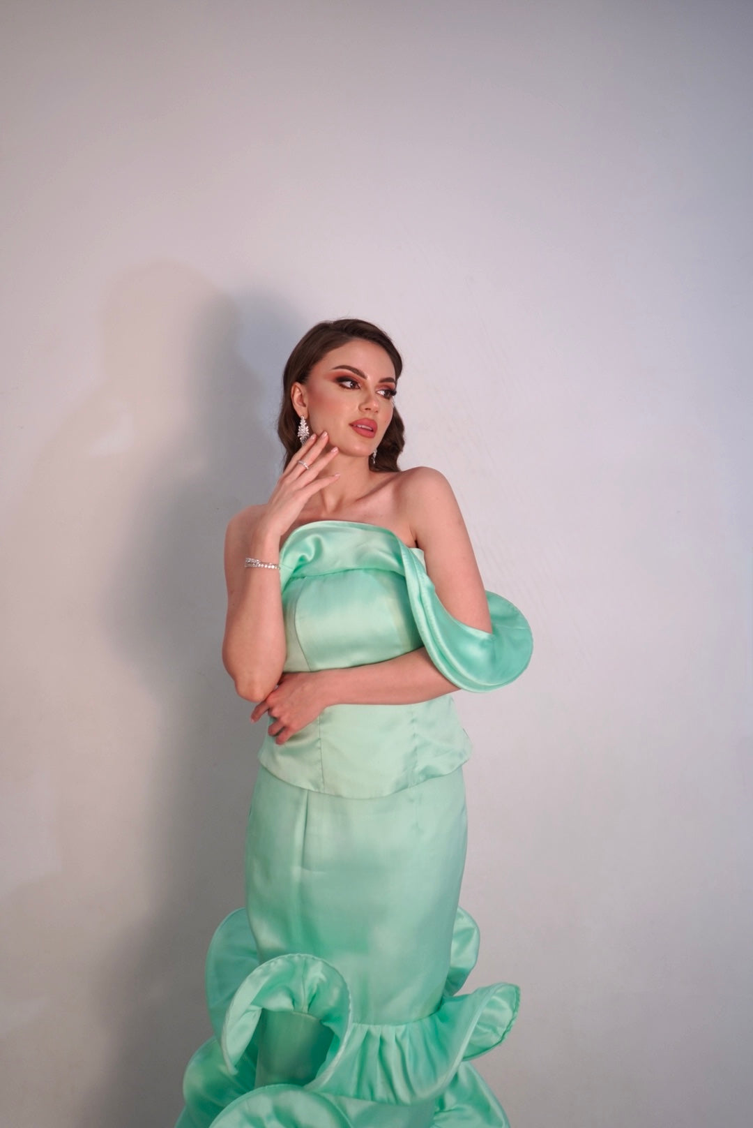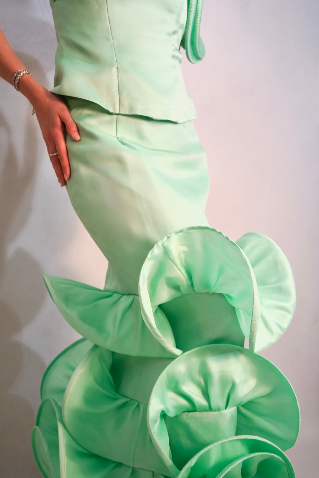 A Mint green two piece set mean to elevate your look with ruffles galore.
