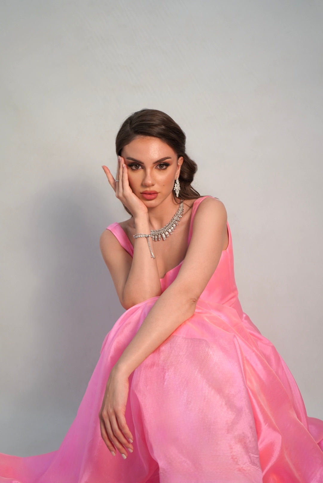 An Elegent timeless pink dress that embodies the colors of summer, yet the taste of luxury.