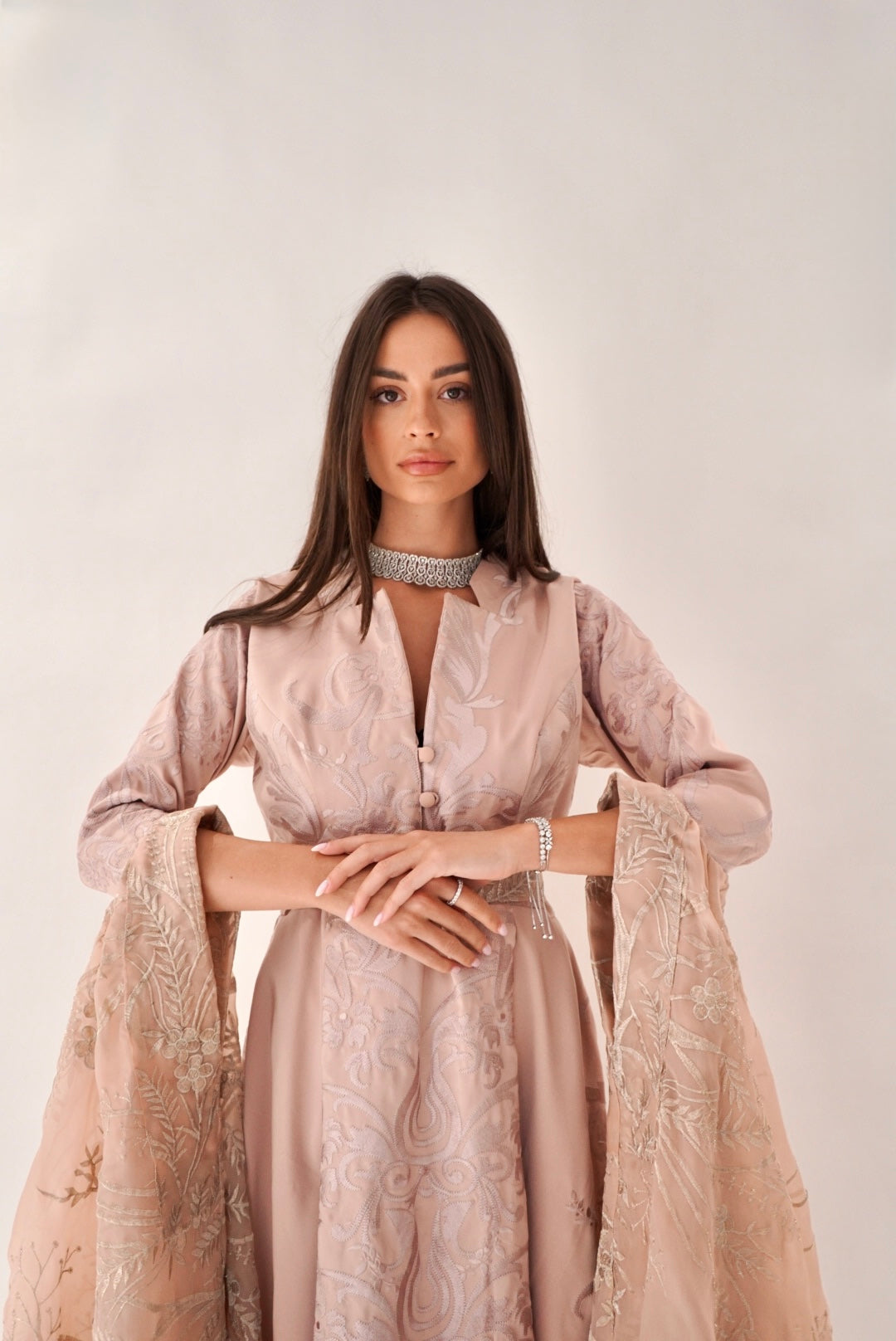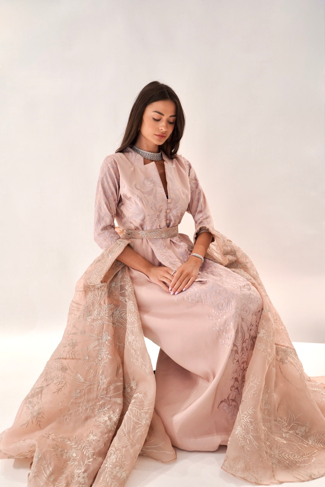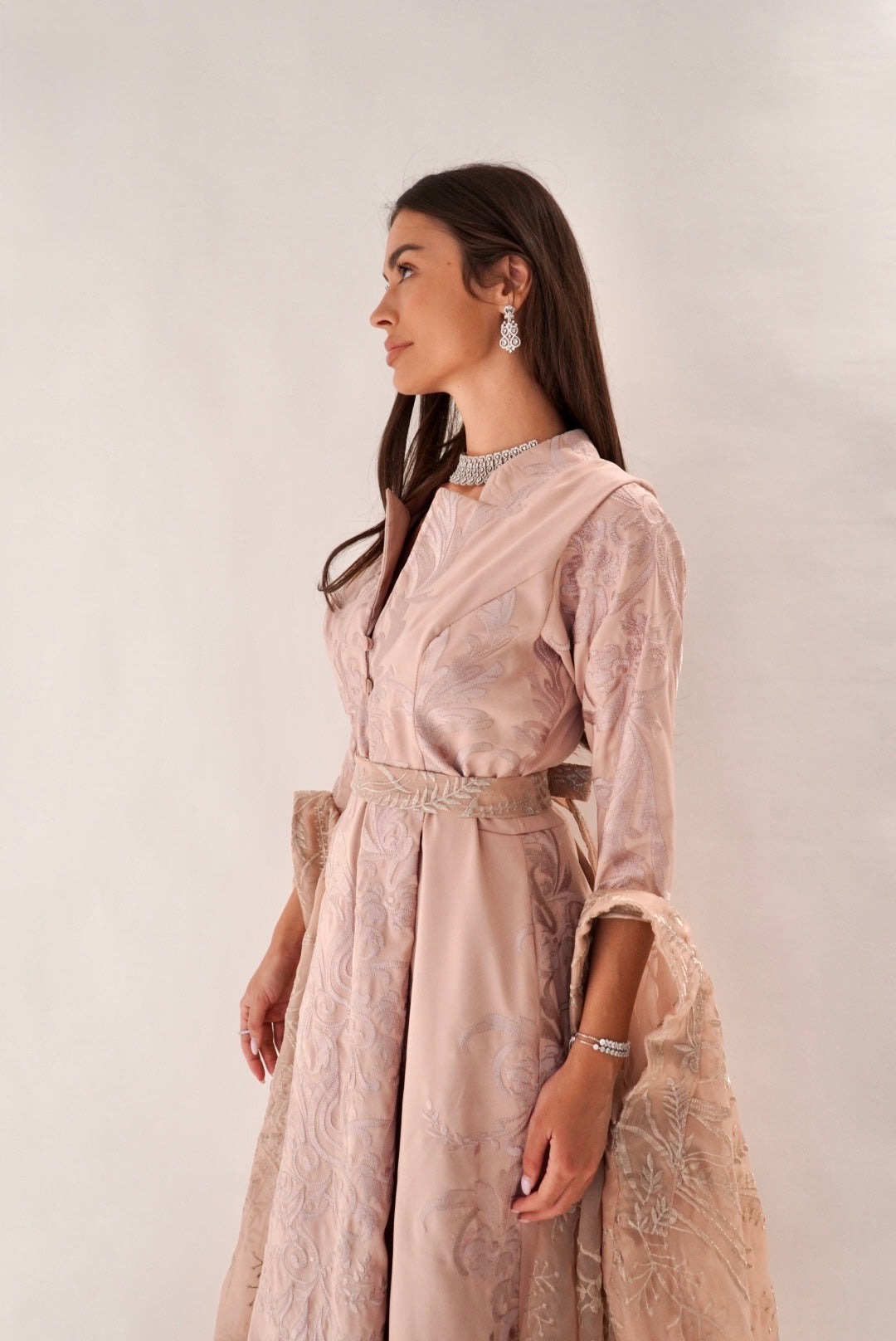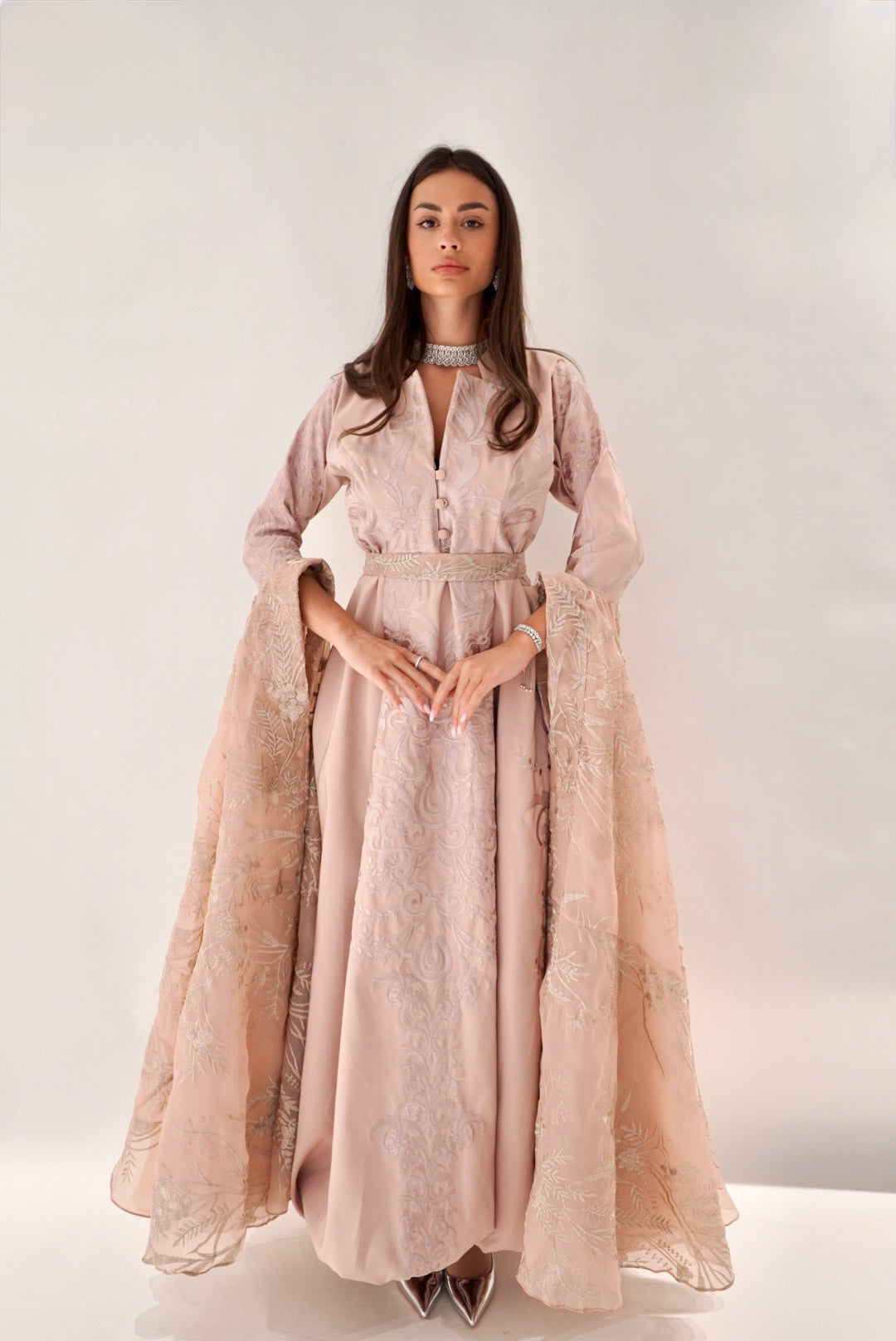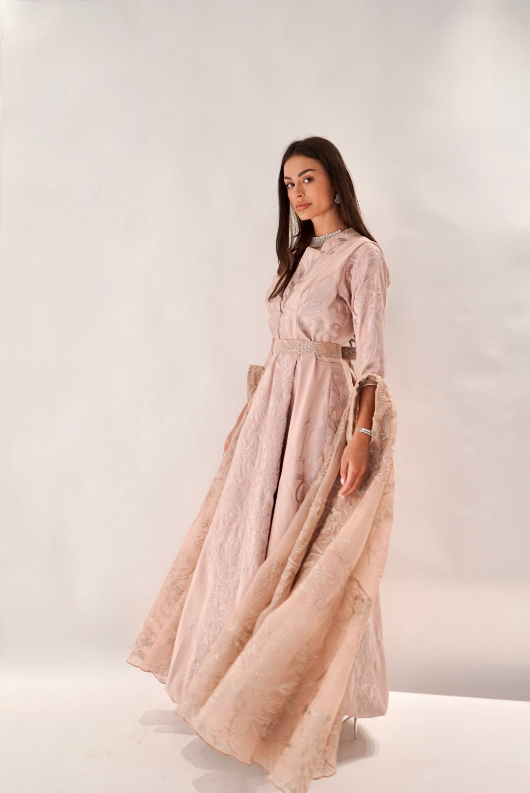 A beautifully made pink Jalabya with a dramatic sleeve for your perfect enterance anywhere.
