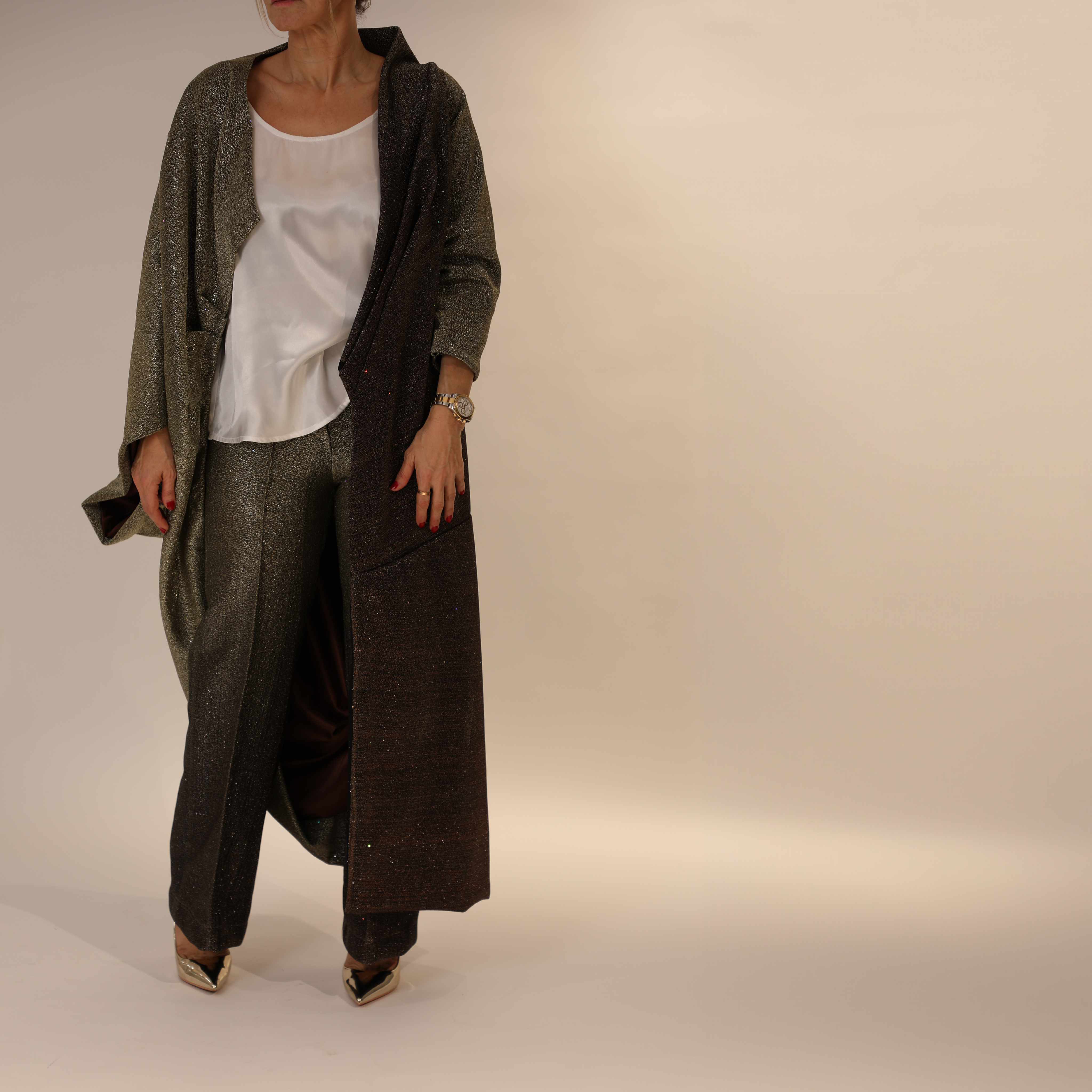 Our heavy duty two-piece set that sparkkles at night, yet keeps you warm.