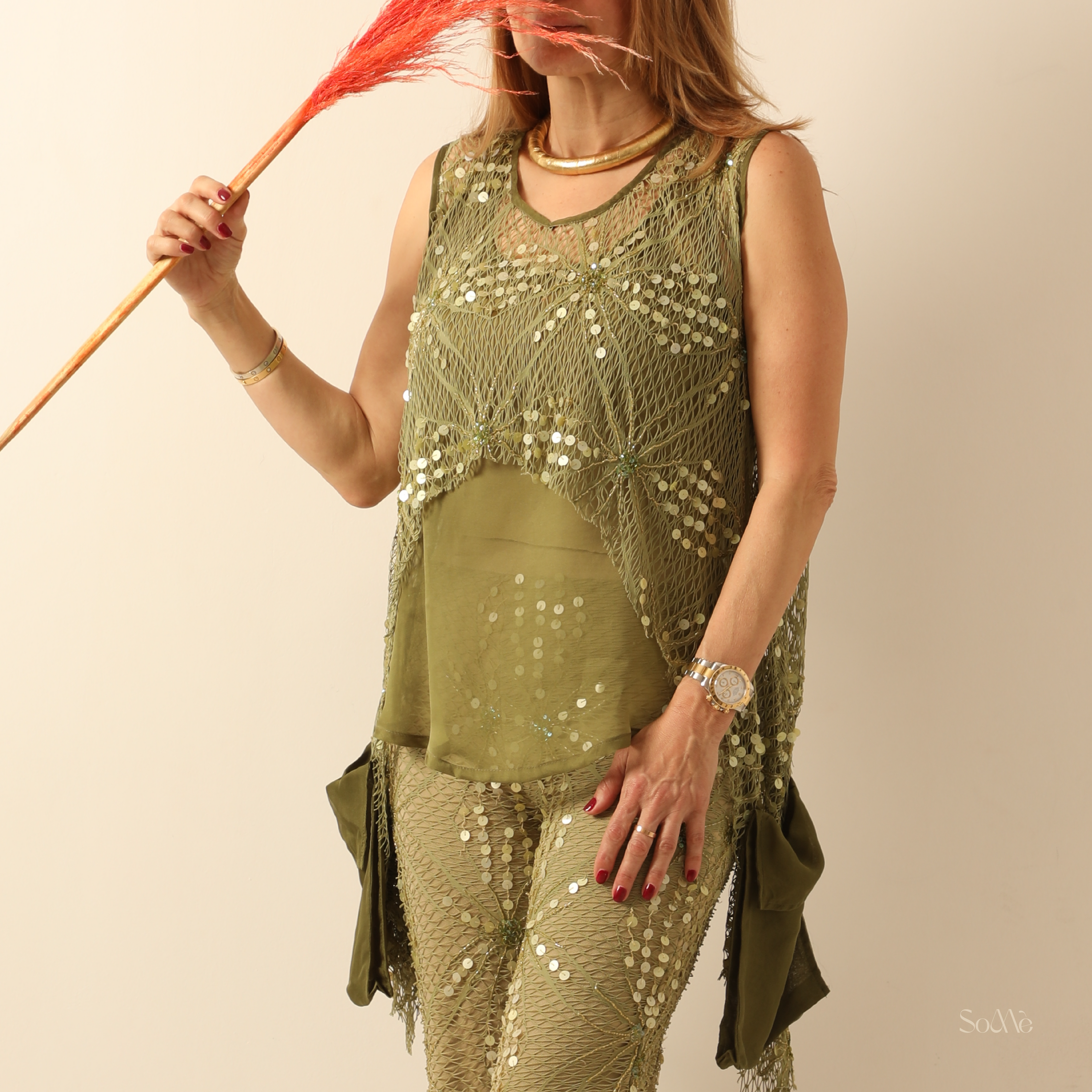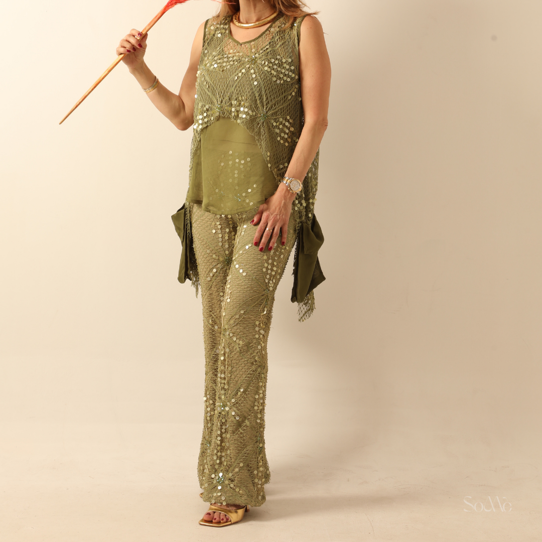 A stylish green two piece that will make you stand out in any occasion.