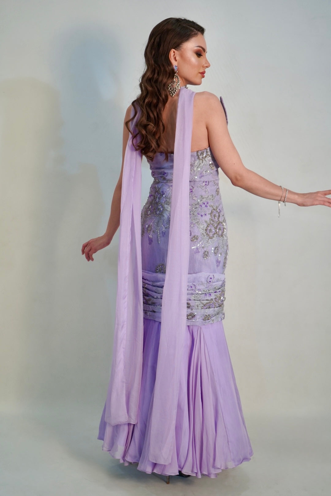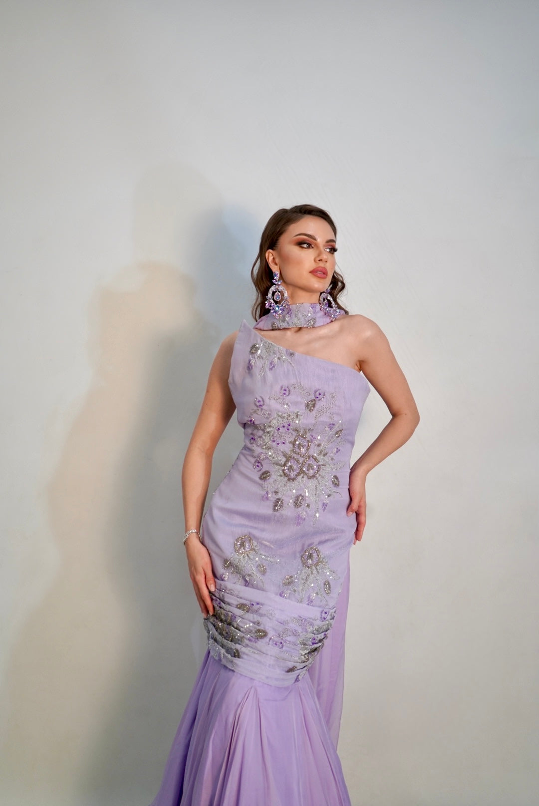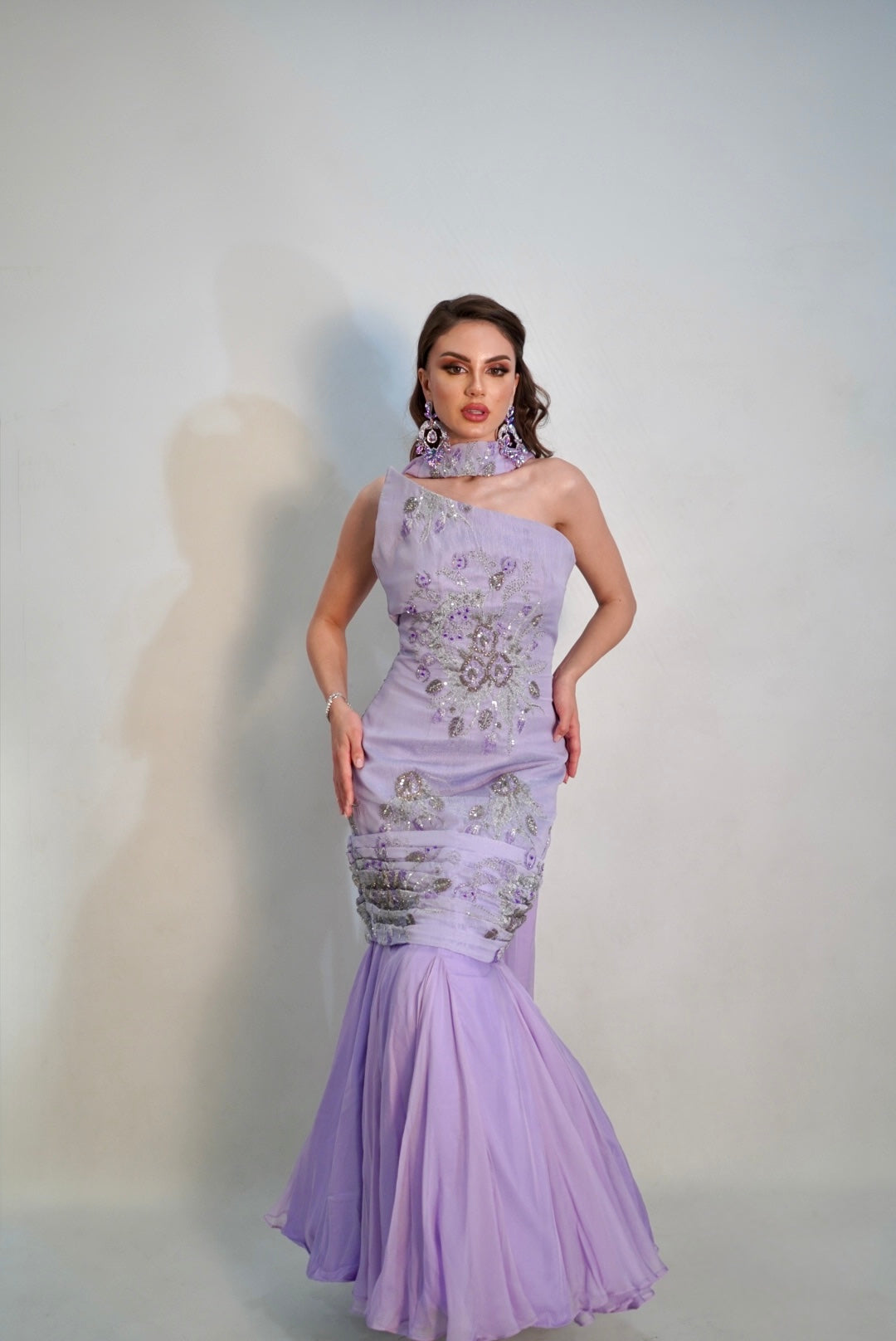 An asymetric purple delight and gown to wear for any occasion.